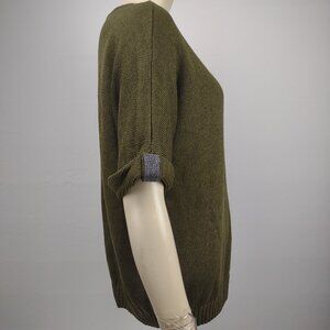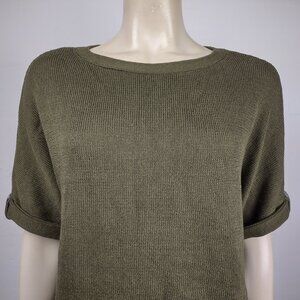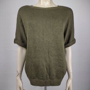 NWT Chico's Ambered Olive green Caviar Trim sweater tee short sleeve size 1