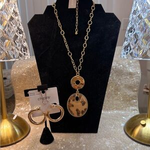 NWT Chico’s Animal double-sided Necklace with hoop / post earrings