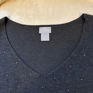 NWT Chico’s Beaded Charcoal Grey Pullover Top, Size 0 Small