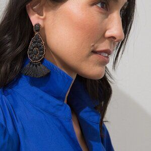 NWT Chico's Black Beaded Fringe Drop Earrings OS