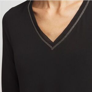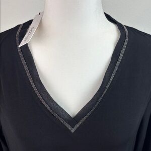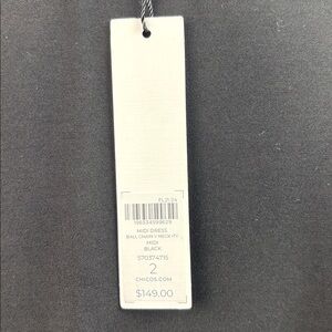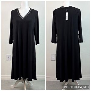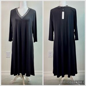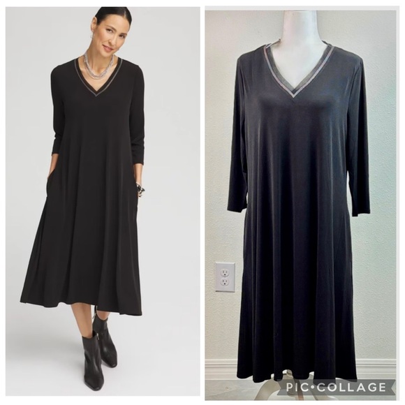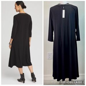 NWT Chico's Black Long Sleeve V-Neck with detail, A-Line midi Dress size 2/Large