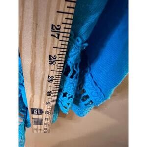Chico's 570226882 Blue Crochet Lace Hem Tassel Trim Open Front Cardigan Size 4