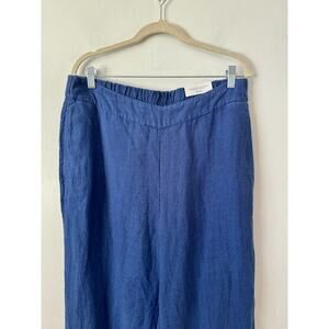 NWT Chicos Blue Pull On Linen Flare Trouser Pants. Comfortable elastic waist with a high rise and pockets. Made from 100% linen. Relaxed fit.