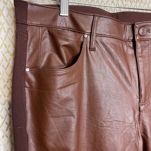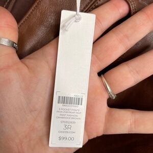 NWT Chico's Brown Five Pocket Ponte Faux Leather Slim Leg Front Pant Size 3R/16R