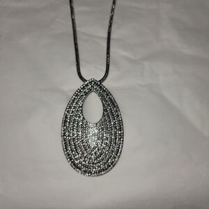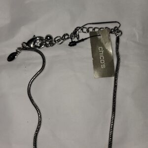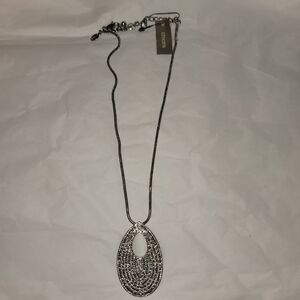 NWT Chico's Chandra Teardrop Pendent Necklace Rhinestone Bling. Silver tone.