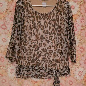 NWT Chico's Cool Ocelot Print in Warm Sand Knit Mesh Top Size M