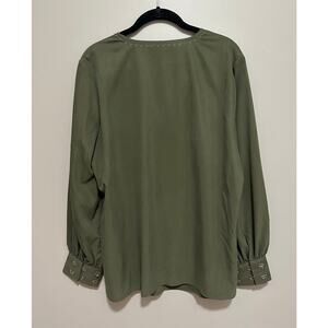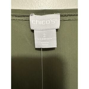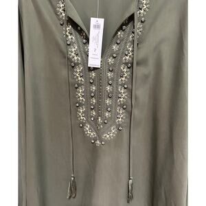 NWT Chico's Embellished Peasant Blouse Women's 2 12/14 Long Sleeve Olive Green