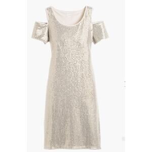 NWT Chicos Gold sequins Cold Shoulder Dress size medium (1)