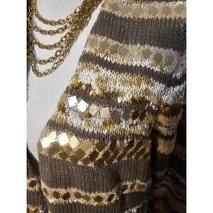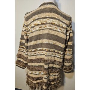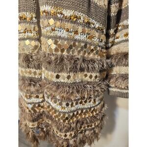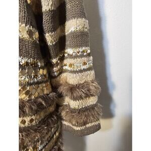 NWT Chico’s Greta Cardigan Sweater Womens XL Mirror Front Silky Fringe Faux Fur