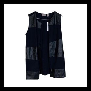 Very Sharp Style & Well Made Vest In Alternating Black Material & Faux Leather