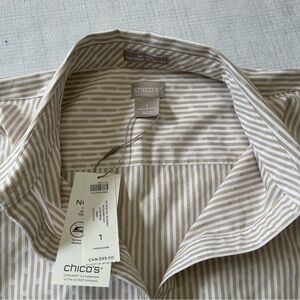 NWT Chico’s No Iron CoolMax All Season Button Down Cream & white stripes. Size 1