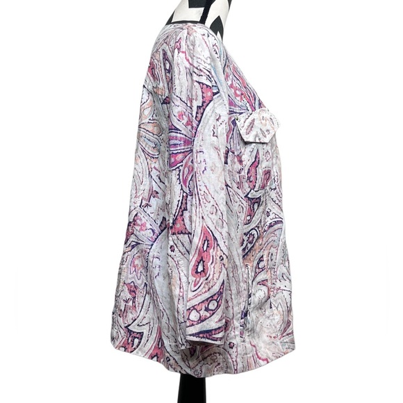NWT Chico's Paisley Boho Sz 3 Multi-Print 100% Linen Front Zip Jacket.