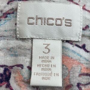 NWT Chico's Paisley Boho Sz 3 Multi-Print 100% Linen Front Zip Jacket