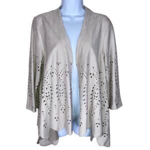 NWT Chico's Perforated Suede Open Front Cardigan Jacket Drape Scalloped Hem 2 P