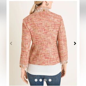NWT- Chico's- Pink Embellish Jaqueline Tweed Jacket Blazer, Size M (8/10)