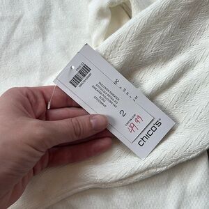 NWT Chico’s Pullover Sweater with pointelle sleeves in the color ecru. Sooo incredibly soft! Size 2 or US size L. great condition.