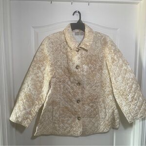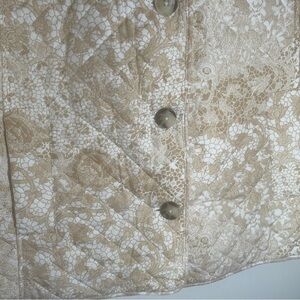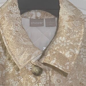 NWT Chico's Quilted Lace Print Jacket sz 4 20/22 Button Up Beige White Pockets