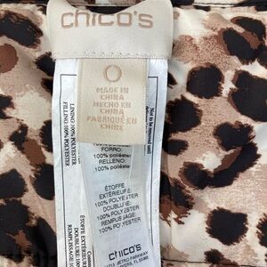 NWT Chico's Reversible Leopard & Black Light Weight Puffer Coat, Size 0 Small