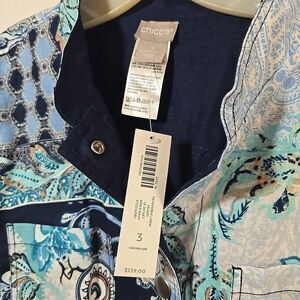 NWT Chico's Reversible Linen Jacket Kings Navy Mixed Print Paisley Women's XL