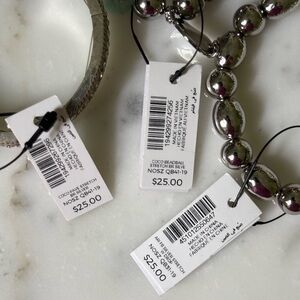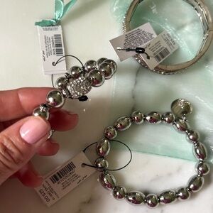 Add instant sparkle and polish to your wrist with this NWT set of 3 silver-tone stretch bracelets from Chico’s.