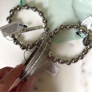 NWT Chico’s Set of 3 Silver Stretch Bracelets Beaded & Crystal Holiday Gift
