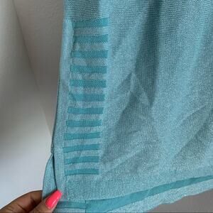Chico's Shimmer Side Rib Detail Pull On Sweater Top. Linen Blend. Blue.