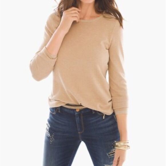 NWT Chico’s Shine-Trim Mindy Pullover in Heather Arabian Camel Size 2 | Large