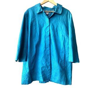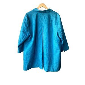 NWT Chicos Size 4 XL Algiers Blue Pleat Topper Jacket Roll Cuff 3/4 Sleeve