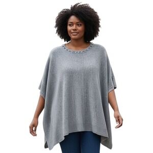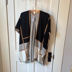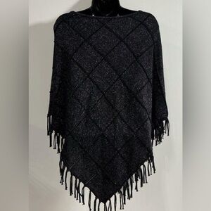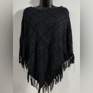 NWT. Chico’s, Small, Charcoal Black Fringe Poncho