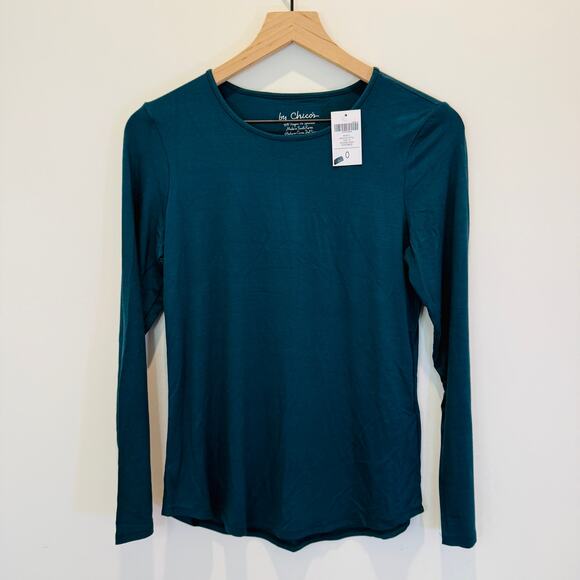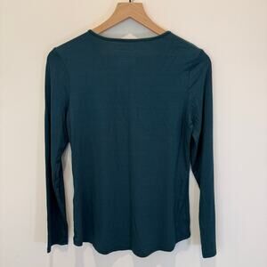 Beautiful NWT Chico’s Smooth Karina Shirttail Top in the striking Goddess Green shade. Flattering, stretchy, and perfect for layering or wearing on its own. Size 0 (fits like a Small/4). Soft rayon-spandex blend for comfort.