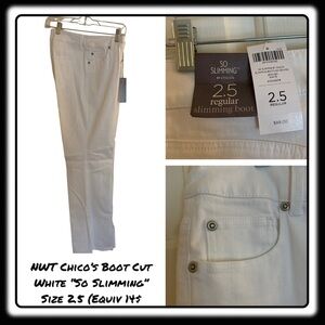 NWT Chicos “So Slimming” boot-cut denim white size 2.5 (approx sz 14) 5-pocket styling.