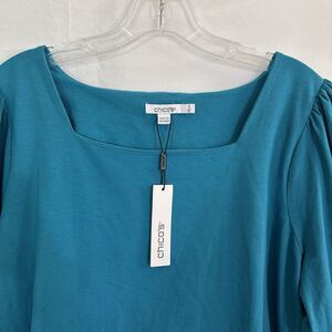 NWT Chico's Square Neck Puff Sleeve Top Peacock Blue 3 (XL)