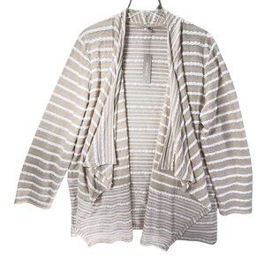 NWT Chicos Striped Cardigan Jacket Beige Sand Sz 3 XL 16 Open Front Textured