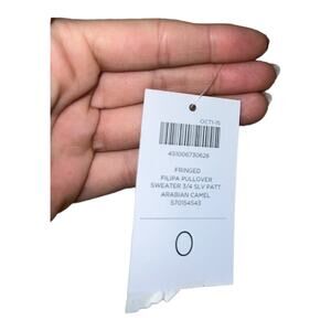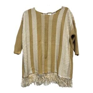 NWT Chico’s Tan Filipa Striped 3/4 Sleeve Boho Knit Sweater w. Fringe Hem