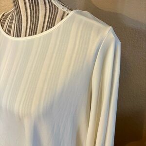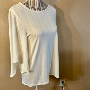 Cream (Ecru by Chico’s) colored Shirt with a Round Neck and 3/4 Length Flare Sleeves.