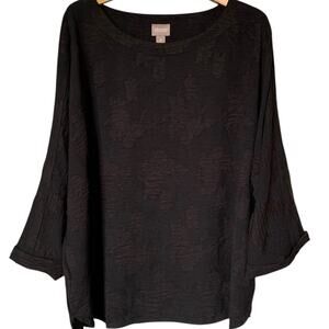 NWT Chico's Top Women's Size 4 (2X) Tropical Clip Jacquard Black Cuffed Sleeve