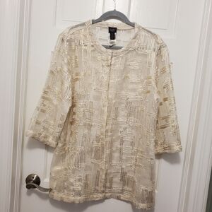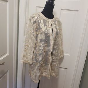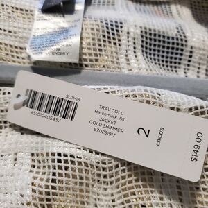 NWT Chico's Traveler's Collection Jacquard Gold Shimmer Jacket Sz 2=12, Ret $149