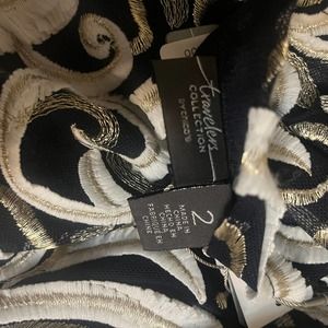 NWT Chico's Travelers Collection Scrolled Bomber Jacket Size 2 Large Navy Gold