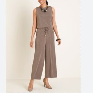 NWT • Chico's Travelers Deep Taupe Tie Waist Jumpsuit size 3