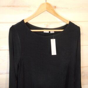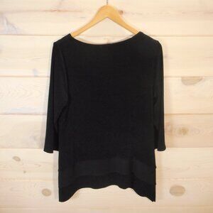 NWT Chicos Travelers Size 1 Women's M Mesh Trim Top 3/4 Sleeve Black Slinky Knit