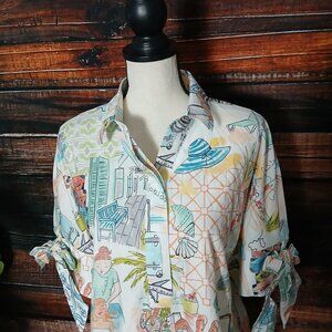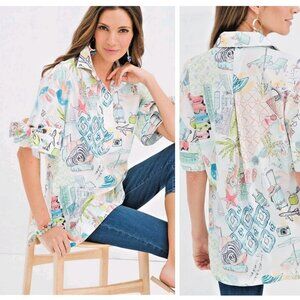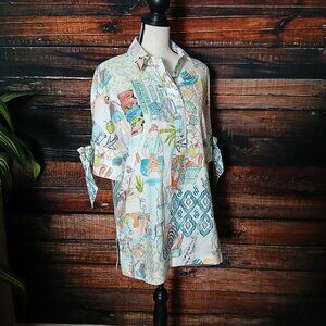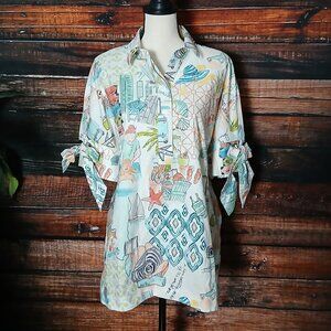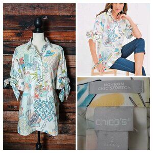 NWT Chicos Tunic Top Size 2 US 12 No Iron Paradise 3/4 Tie Sleeve Popover