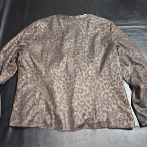 NWT Chico's Womens Brown Animal Leopard Print Faux Leather Trim Jacket 3 XL 16