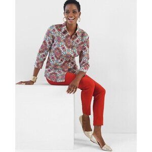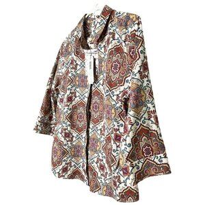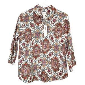 NWT Chicos Womens Button Top Colorful Medallion 3/4 Sleeve Collar Shirt Sz 1
