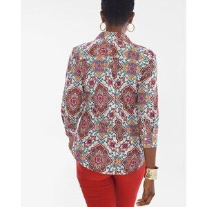 NWT Chicos Womens Button Top Colorful Medallion 3/4 Sleeve Collar Shirt Sz 1.