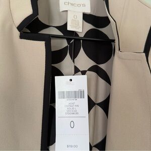 NWT Chico’s Women’s Contrast Pipe Blazer Jacket in Tan Light Brown Size Small 4
