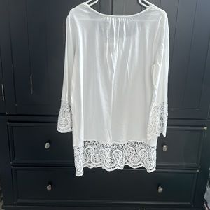 Beautiful lace detail sold as shirt but would work for the beach. Very soft. Pit-pit 21in- length 29 1/2 in.
