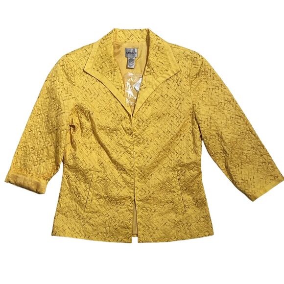 NWT Chico's Yellow Metallic Embroidered Clasp Closure Jacket Size 0