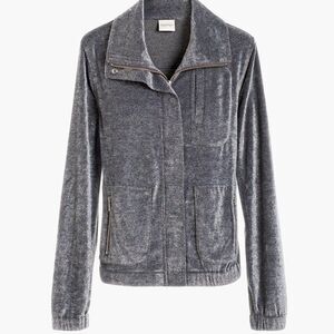NWT Chico's Zenergy Velour Jaspe Bomber Jacket 0 (Small) Grey Zip Pockets $109