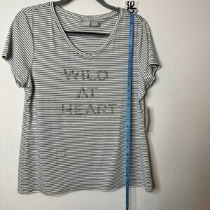 NWT Chico's Zenergy Wild At Heart Olive White Stripe V-Neck Tee 1