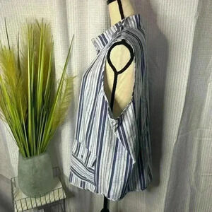 Elevate your wardrobe with this stylish Chico's Zenergy Women's Vest in Navy Blue. The vest features a trendy striped pattern, sleeveless design, and a reversible style that gives you two looks in one. It is made of high-quality polyester and spandex material and has pockets and a zip closure for easy wear.